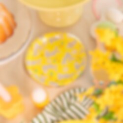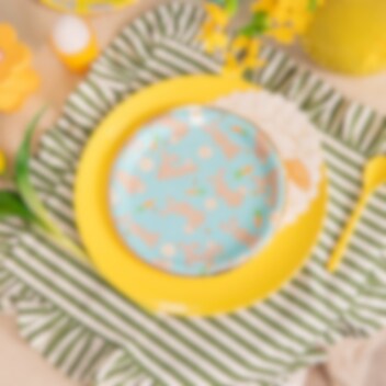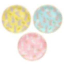 Dek de tafel voor een feestelijke paasmaaltijd met deze schattige borden, versierd met lieve konijntjes, wortels en bloemen. De drie verschillende pasteltinten zorgen voor een speelse en voorjaarsachtige sfeer, terwijl de glanzende gouden details een elegante touch toevoegen.