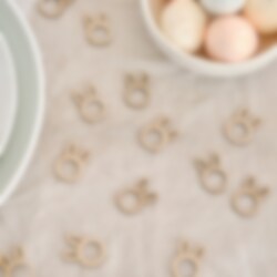 24 stuks houten paashazen om de paastafel mee te versieren. Het wordt een charmant detail en iets dat je gasten zullen waarderen. De confetti is milieuvriendelijk en kan worden hergebruikt en elke paashaas is 2 x 3 cm groot.