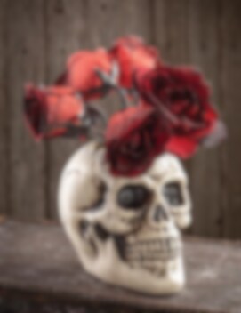 Een spectaculaire Halloween-decoratie die zeker de aandacht trekt. Deze schedelvaas is versierd met vijf rode rozen die bewegen en verwelken wanneer de vaas aanstaat, een griezelig effect dat de sfeer op elk feest versterkt. De vaas is ca. 30 cm hoog en werkt op ingebouwde batterijen.