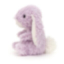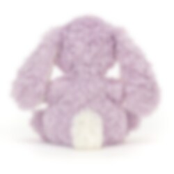 Een schattig klein rond zittend konijn in lavendel-paars met wit in de oren, op de neus en op de pluizige staart. Met zachte en een beetje ruige vacht, een schattige roze neus en zijn lange oren en korte armen en benen, geeft het de indruk van een echt schattig konijntje. Gemaakt van polyester en indien nodig met de hand gewassen.