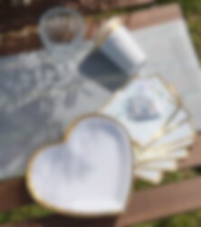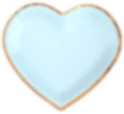 10 stuks hartvormige bordjes in een mooie lichtblauwe kleur met goud folieranden. Super schattige bordjes om neer te zetten bij je feestje, babyshower of doop. De bordjes zijn ongeveer 22,5 x 20 cm groot.