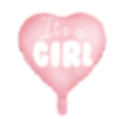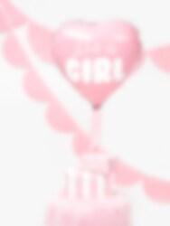 Een hele mooie hartvormige folieballon met de tekst "It's a girl" in het wit. Een mooie ballon die de babyshower decoratiefer zal maken. De ballon heeft een diameter van ongeveer 45 cm.