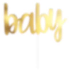 Super leuke taartdecoratie met het woord baby in goudfolie. Versier de taart hiermee als er een Babyshower is. De taartdecoratie is ongeveer 15 cm hoog.