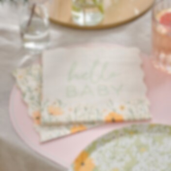 16 mooie en zomerse servetten die een perfecte aanvulling zijn wanneer je een tafel dekt voor een babyshower. De servetten geven je tafel een mooie bloemige touch. De servetten hebben 2 lagen en zijn uitgevouwen 30 x 30 cm groot.