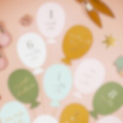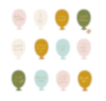 Leuke kleurrijke mijlpaalkaarten in de vorm van ballonnen. Met behulp hiervan kan de ontwikkeling van de baby worden gefotografeerd en gedeeld met vrienden en familie. Perfect om aan de kersverse moeder te geven bij haar babyshower.