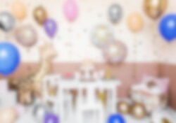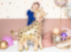 Superfijne folieballon van een giraf in een licht roze/beige kleur met goud folie stippen. Een schattige decoratie om mee te nemen naar het kinderfeestje of de babyshower. De folieballon is ongeveer 80 x 102 cm groot en wordt opgeblazen met gewone lucht of helium.