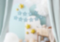Leuke slinger met een motief van blauwe sterren met de tekst "Babyshower" in het wit. Versier de kamer met deze slinger voor het Babyshower voor een leuk look. De slinger is 290 cm lang en de motieven zijn 16,5 x 17,5 cm groot.