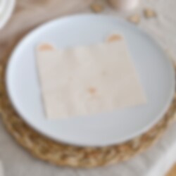 16 schattige en charmante servetten met teddybeer-gezichten die perfect zijn als je een tafel dekt voor een babyshower. De servetten behoren tot de "Teddybeer" collectie die warme en neutrale kleurtinten heeft en een trendy ontwerp.