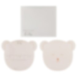 In het pakket zitten 10 dubbelzijdige tipkaarten versierd met een teddybeergezicht, met afmetingen van 13 cm hoog x 15 cm breed. Bovendien wordt er een envelop van transparant papier bijgeleverd, die 13,5 cm hoog en 15,6 cm breed is, evenals een teddybeer-etiket om de envelop te verzegelen, 3,5 cm hoog.