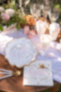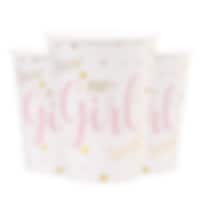 10 schattige bordjes met de tekst Baby Girl en met fijne details in de kleuren roze en goud. De randen zijn ook goud verijdeld. Perfect om eten op te serveren bij het dekken van de tafel voor een babyshower of doop. Stijlvol samen te decoreren met bijpassende bekers, servetten en tafelloper in hetzelfde thema.