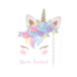 8 uitnodigingskaarten in pastelkleuren met een motief van een eenhoorn en de tekst "You're invite". Nodig dierbaren uit voor je babyshower met behulp van deze. De kaartjes zijn ongeveer 17 x 10 cm groot. Het pakket bevat ook 8 stuks witte enveloppen.