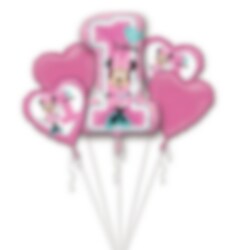 Leuk ballonboeket in Minnie Mouse. Een leuk accessoire voor je 1-jarig verjaardagsfeestje. Het pakket bevat een supershape ballon (48 x 71 cm) en 4 hartvormige ballonnen (43 cm).