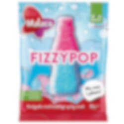 Lekkere snoepjes die flessen voorstellen met tutti frutti-smaak. Het zakje bevat 85 gram.