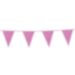 Mooie vlaggenslinger van karton in een sprankelende roze kleur die een stijlvolle decoratie zal zijn voor elk kinderfeestje of feestje. De slinger is ongeveer 6 meter lang.