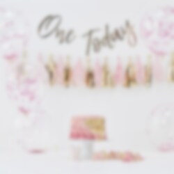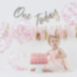 Smash the Cake kit in de kleuren roze en goud waarmee je lieve kaartjes kunt maken tijdens het 1 jaar verjaardagsfeestje. Het pakket bevat: