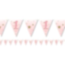 Mooie vlaggenslinger van papier met een leuk 1 jaar motief. Een leuke decoratie voor een 1 jaar verjaardagsfeestje. De vlaggenlijn is ongeveer 3,7 m lang.