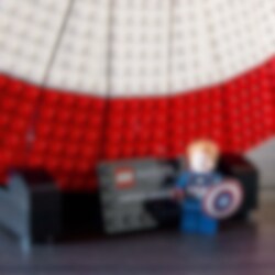 Het schild van Captain America is een van de bekendste voorwerpen uit het Marvel Cinematic Universe. Nu kun je dit symbool van de strijd van goed tegen kwaad zelf in huis halen. Dit schijfvormige model van 3128 onderdelen heeft een diameter van ca. 47 cm en staat op een standaard met een naamplaatje. Om je pronkstuk nog interessanter te maken, is er ook een minifiguur van Captain America inbegrepen.