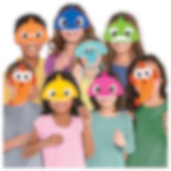 8 maskers die de hele haaienfamilie vertegenwoordigen uit het nummer Baby Shark. Nu kunnen jij en je vrienden zich verkleden als je favorieten wanneer het tijd is voor een Baby Shark-themafeest. De maskers worden met een elastische band vastgezet.