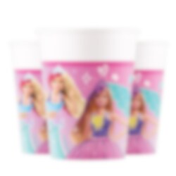 8 papieren bekers met een mooi Barbie-afbeelding en kleurrijke schattige details. Stijlvolle bekers om te serveren als het tijd is voor een kinderfeestje.