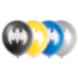 8 latex ballonnen in leuke kleuren met afbeeldingen van Batman. De ballonnen kunnen worden opgeblazen met lucht of helium en hebben een diameter van ongeveer 28 cm wanneer opgeblazen.