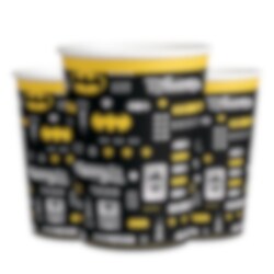8 papieren bekertjes met stoere Batman-afbeeldingen. De bekers zijn ongeveer 10 cm hoog en hebben een inhoud van ongeveer 250 ml.