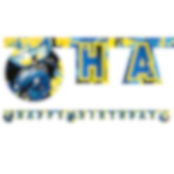 Stoere slinger in de kleuren donkerblauw, geel en zwart met de tekst 'Happy Birthday' en een leuke afbeelding van Batman. Een chique decoratie voor het Batman-kinderfeestje. De slinger is ongeveer 2 meter lang.