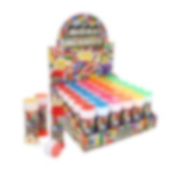 Bellenblaas waar de fles motieven heeft van kleurrijke blokjes. Bellenblaas is populair om te krijgen als een cadeau op kinderfeestjes en het is leuk om samen bellen te blazen. De prijs is per stuk en de fles bevat 50 ml.