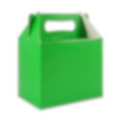 Groene feestbox met handvat dat makkelijk opvouwbaar is. Perfect om snoepjes en verrassingen in te stoppen voor het kinderfeestje of feestje. De box is gemaakt van karton en is ongeveer 15 cm lang, 10 cm breed en 12 cm hoog. De feestboxen worden per stuk verkocht.
