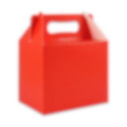 Rode feestbox met een handvat dat gemakkelijk opvouwt. Perfect om snoepjes en verrassingen in te stoppen voor het kinderfeestje of feestje. De box is gemaakt van karton en is ongeveer 15 cm lang, 10 cm breed en 12 cm hoog. De feestboxen worden per stuk verkocht.