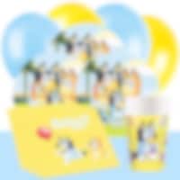 Vier een vrolijk kinderfeestje met Bluey en haar familie! Met dit kleurrijke feestpakket maak je het versieren super eenvoudig, alles past perfect bij het populaire Bluey-thema. De borden, papieren bekers en servetten zijn versierd met Bluey en Bingo in vrolijke kleuren, terwijl de gele en lichtblauwe ballonnen samen met het lichtblauwe plastic tafelkleed voor een feestelijke sfeer zorgen. Alles wat je nodig hebt voor een geslaagd verjaardagsfeest zit in dit pakket, ideaal voor ouders die tijd willen besparen en hun kind een onvergetelijke dag willen geven. Wie het feest nog leuker wil maken, vindt bijpassende uitdeelzakjes, feestboxen, Bluey-decoratie, traktaties en kleine cadeautjes in dezelfde stijl! In het pakket voor 8 gasten: ✔️ 8 Bluey borden, 22,5 cm ✔️ 8 Bluey papieren bekers, 270 ml ✔️ 16 Bluey servetten, 33 x 33 cm ✔️ 1 lichtblauw plastic tafelkleed, 137 x 274 cm ✔️ 10 gele ballonnen ✔️ 10 lichtblauwe ballonnen In het pakket voor 16 gasten: ✔️ 16 Bluey borden, 22,5 cm ✔️ 16 Bluey papieren bekers, 270 ml ✔️ 16 Bluey servetten, 33 x 33 cm ✔️ 1 lichtblauw plastic tafelkleed, 137 x 274 cm ✔️ 10 gele ballonnen ✔️ 10 lichtblauwe ballonnen