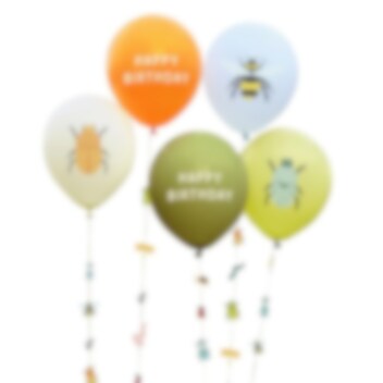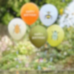 Geef je Bug Party een kleurrijke touch met deze ballonnen met leuke ballonnenstaarten! Perfect om een speelse sfeer met een natuurthema te creëren. Elke verpakking bevat vijf ballonnen met verschillende opdrukken.