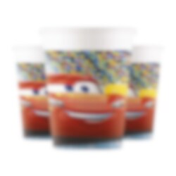 8 papieren bekers met een coole afbeelding van Bliksem McQueen uit de film Cars 3. De bekers zijn ongeveer 10 cm hoog en hebben een inhoud van ongeveer 200 ml.