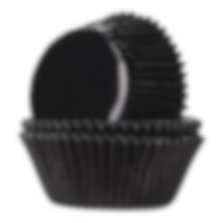 24 muffinvormpjes in zwarte folie, ideaal voor het serveren van lekker gebak voor kinderfeestjes en feestjes. De muffinvormpjes hebben een bodemdiameter van 5 cm.