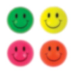 Neonkleurige stuiterballen met leuke Smiley-afbeeldingen. Perfect om in het uitdeelzakje te stoppen. De stuiterballen hebben een doorsnede van ongeveer 3 cm.