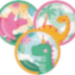Dino Girl - Bordjes 18 cm, 8 stuks