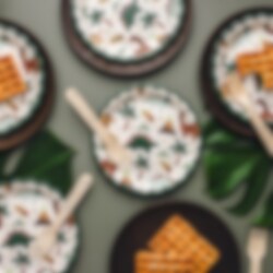 De bordjes zijn gemaakt van papier en hebben een diameter van 18 cm.