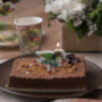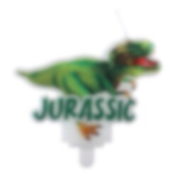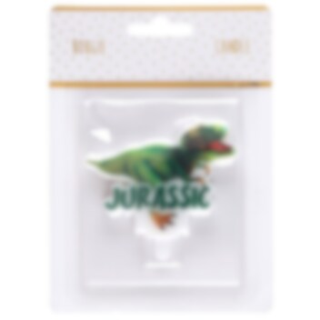 Taartkaars met een afbeelding van een stoere T-Rex en de tekst 'Jurassic'. Perfect om je taart of gebakjes mee te versieren voor een cool feestje. De taartkaars is 7,5 x 6 cm groot.