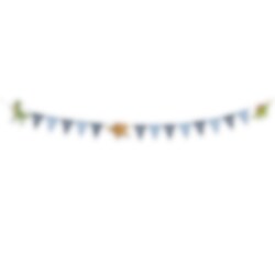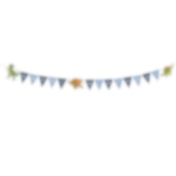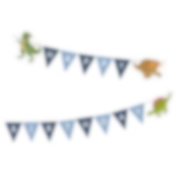 Superfijne slinger met vlagwimpels in blauwtinten. De slinger heeft motieven van stoere dino's en de tekst "Happy Birthday" in het wit. Hang deze boven de feesttafel om een nog leukere sfeer te creëren. De slinger is gemaakt van papier en is 180 cm lang.