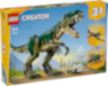 Jongens en meisjes vanaf 9 jaar kunnen terug in de tijd reizen om geweldige actie na te spelen met deze T. rex (31151). Het Tyrannosaurus rex speelgoed kan in allerlei standen worden gezet, zodat kinderen de kop, voeten, staart, kaak, benen, armenen zelfs de tenen en hielen in verschillende houdingen kunnen bewegen. Er is ook een nest met 2 kleine dinosauruseieren. Samen vormen ze een indrukwekkende blikvanger op een plank of nachtkastje. Deze LEGO® dinosaurus bouwset biedt kinderen een wereld vol speelmogelijkheden met 3 verschillende dinosaurussen om te bouwen met dezelfde stenen. Ze kunnen een T. rex maken, deze ombouwen tot een angstaanjagende Triceratops met 3 hoorns of er een Pterodactylus van maken met grote beweegbare vleugels. LEGO Creator 3in1 bouwsets zijn geweldige cadeaus voor kinderen met 3 mogelijkheden in elke doos. De 3-in-1 sets bevatten modellen die aansluiten op hun interesses, waaronder supersnelle voertuigen, geweldige dieren en gedetailleerde stadstaferelen.