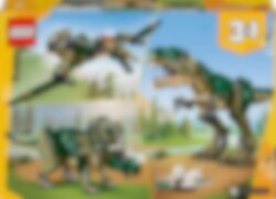 Reis terug in de tijd voor leuke avonturen met 3 geweldige dinosaurusfiguren. Bouw een angstaanjagende T. rex met grote tanden en een krachtig lichaam. Voor meer actie kun je het model ombouwen tot een Triceratops met nekschild en 3 hoorns of een Pterodactylus met grote vleugels om de lucht in te vliegen. De keuze is aan jou met deze fantastische 3-in-1 set!