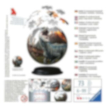 3D-puzzel met Jurassic World-motief met een diameter van 13 cm. Het pakket bevat een basis om je nieuwe puzzelbal op te plaatsen. Voor deze puzzel is ook geen lijm nodig, begin gewoon met bouwen.
