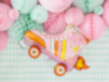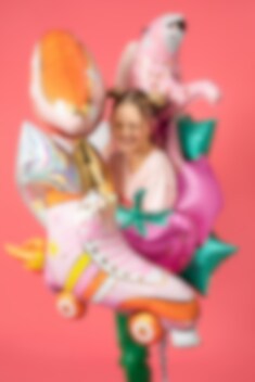 Zeer mooie folieballon van een kleurrijke rolschaats met goudfolie details. Een leuke decoratie om mee te nemen naar het feest met een discothema.
