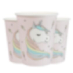 10 super schattige papieren bekers in roze met een afbeelding van een eenhoorn uit het eenhoorn-thema. De bekers zijn ongeveer 9,7 cm hoog en hebben een inhoud van 270 ml.