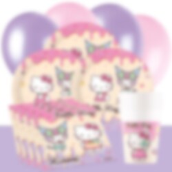 Ontdek de schattige wereld van Hello Kitty en Kuromi met dit complete feestpakket! Het bevat borden (23 cm), papieren bekers (200 ml) en servetten (33 x 33 cm) in vrolijk Hello Kitty & Kuromi-design, geschikt voor 8 of 16 gasten, ideaal voor een kleurrijk kinderfeest of een charmante verjaardag.