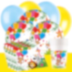Daarnaast vind je in de set 10 gele ballonnen, 10 lichtblauwe ballonnen en een geel tafelkleed van plastic (137 x 274 cm), ideaal om een speelse en feestelijke sfeer te creëren.