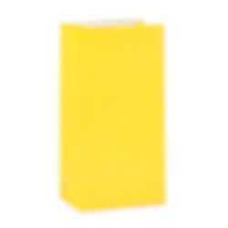 Set van 12 geele papieren uitdeelzakjes, ideaal om te vullen met snoepjes, kleine cadeautjes of traktaties. Perfect voor kinderfeestjes of themafeesten. De zakjes zijn ca. 25 × 13 cm groot.