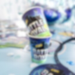 8 stuks stijlvolle blauwe papieren bekers met een coole afbeelding van Battle Royale. Gebruik deze wanneer het tijd is voor feestjes met een Battle Royale-thema. De bekers hebben een inhoud van ongeveer 250 ml.