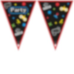 Stoere vlaggenlijn van papier met videogame-afbeeldingen in retrostijl. Een stijlvolle decoratie om de kamer mee te versieren voor het kinderfeestje met een leuk game-thema.