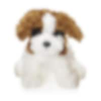 Een schattige knuffelhond met gekrulde en zachte vacht in beige kleur. De hond is 25 cm hoog en kan gewassen worden op 40 graden. Goedgekeurd en CE-gemarkeerd volgens EN71.