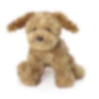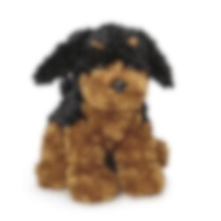 Leuke knuffelhond met zachte en krullende vacht in zwarte en bruine kleur. De hond is 25 cm hoog en kan gewassen worden op 40 graden. Goedgekeurd en CE-gemarkeerd volgens EN71.